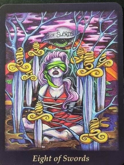 The cards can represent so many things and yet as I look at them they prompt powerful intuitive hits that really nail what needs to be seen at the time. Well that’s how I feel anyway. For example, when I look at the 2 of Swords pictured below, I had the thought that she’s not holding the swords. Rather, the swords are part of her. This was quickly followed by an image of Hugh Jackman as Wolverine in the X-Men franchise and what he went through when Adamantium was bonded to his bones. From there the messages flowed thick and fast like an instantaneous download.