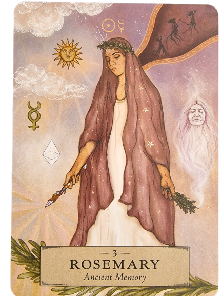 Many of us are aware of the use of rosemary for remembrance and therefore that meaning may easily come to the fore. In Australia sprigs are worn on Remembrance Day and Anzac Day. However, in the “Guidance” section of the book it points out that Rosemary can both connect us with ancient memories and encourage us to stay loyal to our vision. It is said that when the card appears it may represent past feelings and emotions are bubbling up from deep within and that they are making their way to the surface. Or, you are “remembering and accessing ancestral memory that resides in your DNA.” For me, this is why, with any new deck, it is worth reading the guidebook.