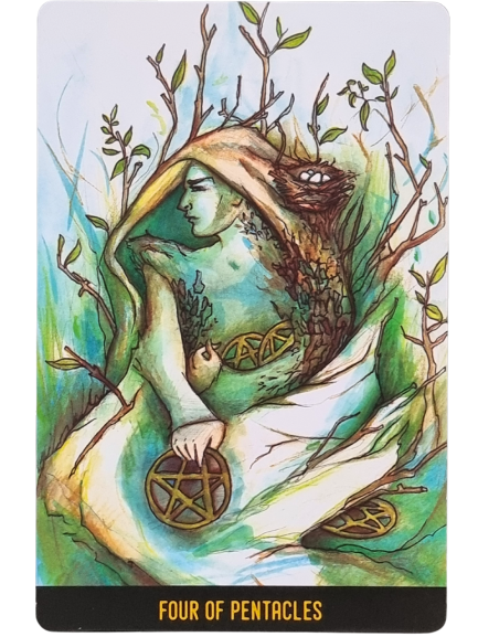The 4 of Pentacles is more nurturing than is usually depicted. Growing a nest egg came to mind as did the need to gather your resources so you can nurture your creations. It focuses on creating stability rather than hording or greed or being miserly. I like that and I like how this deck makes me view myself.