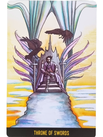 Another thing that stood out to me, and it still does, is that the Throne (King) of Torches and the Crown (Queen) of Torches have swapped genders. That in itself doesn’t bother me. It’s that this is the only suit in which this occurs and I can’t quite understand why. I definitely don’t believe that court cards represent the specific gender pictured on the cards but I do see them as representing an energy that these cards have reversed. Nevertheless I like the art on each of these cards and I think personally I will reverse the titles when I read with them. Although my opinions on so many things to do with this deck have changed so who knows.