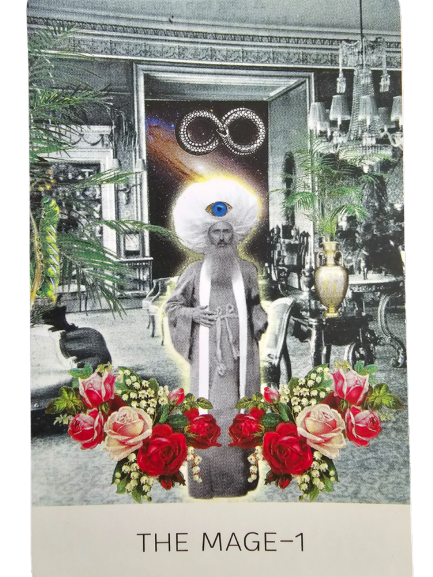 From the outset I felt that The Rosebud Tarot would be an ancestral deck for me but I wasn’t sure why. When I read in the opening pages of the guidebook that the focus of the artwork was on collapsing eras it made more sense. Although, I can’t admit to looking at the cards and thinking, “Oh wow, look at how the collaged images are collapsing time.” Instead I wondered if it was that the imagery connected me with my British and Afro-Caribbean ancestors in some way.