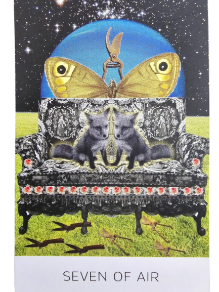 The Minor Arcana is arranged by number rather than suit. They don’t receive the same attention as the Major Arcana and yet they still get the point across effectively. I’ll use the Seven of Fire and the Seven of Air as an example.